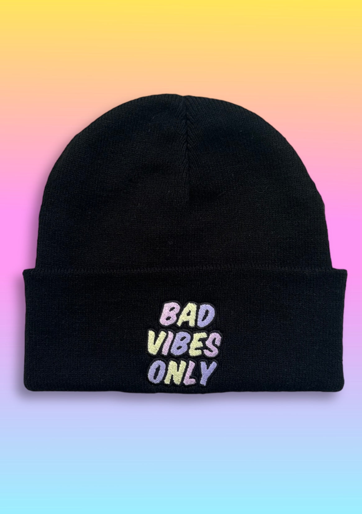 Classic Beanie | Wintermütze in schwarz mit Stick (Bad Vibes only)