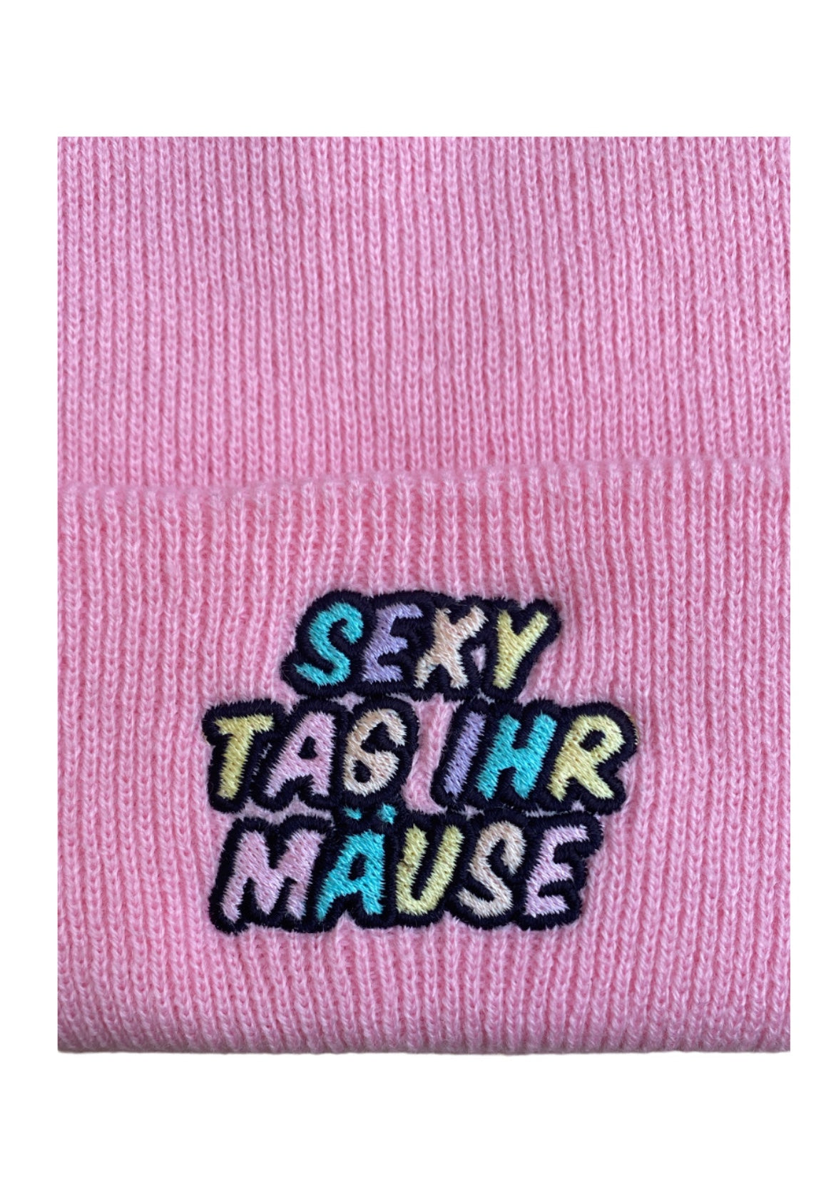 Classic Beanie | Wintermütze in rosa mit Stick (Sexy Tag ihr Mäuse)