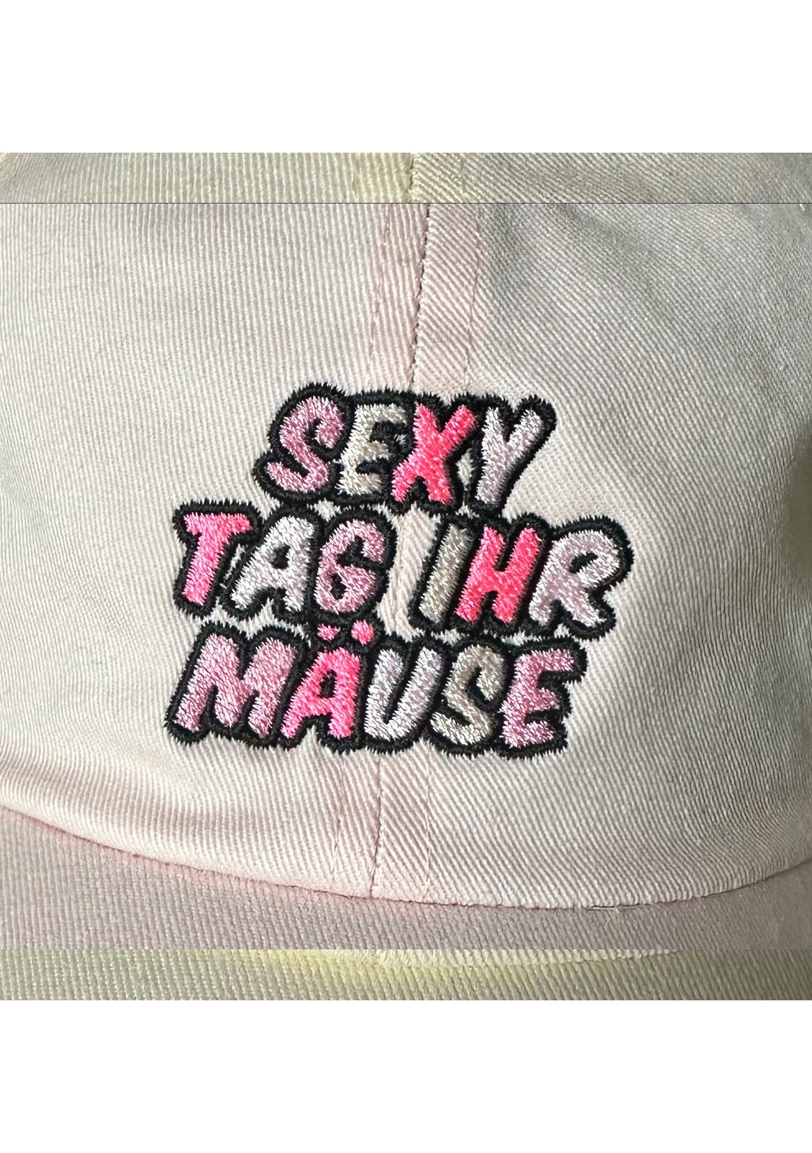Cap „Sexy Tag ihr Mäuse“ Rosa mit Rosa Schriftzug