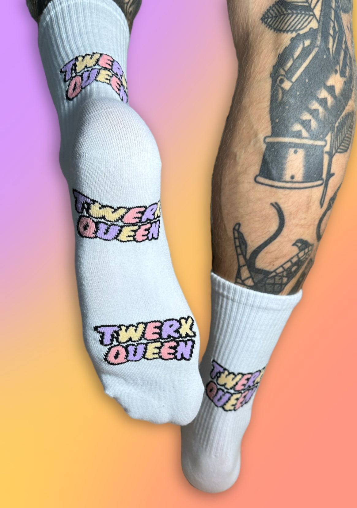 Tennissocken mit gewebten Schriftzug : „TWERK QUEEN“
